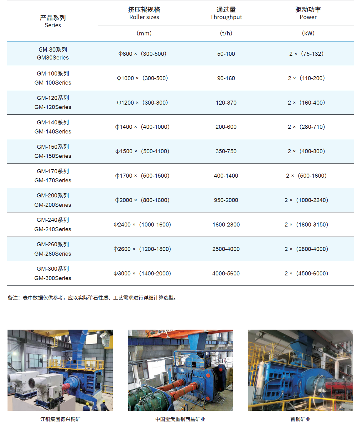 适用于钢铁厂钢渣的破碎和粉磨。可破碎、粉磨钢铁厂钢渣,为钢渣制砖、生产水泥混合材等 综合利用提供合适粒度原料,提升利用率、减少污染。