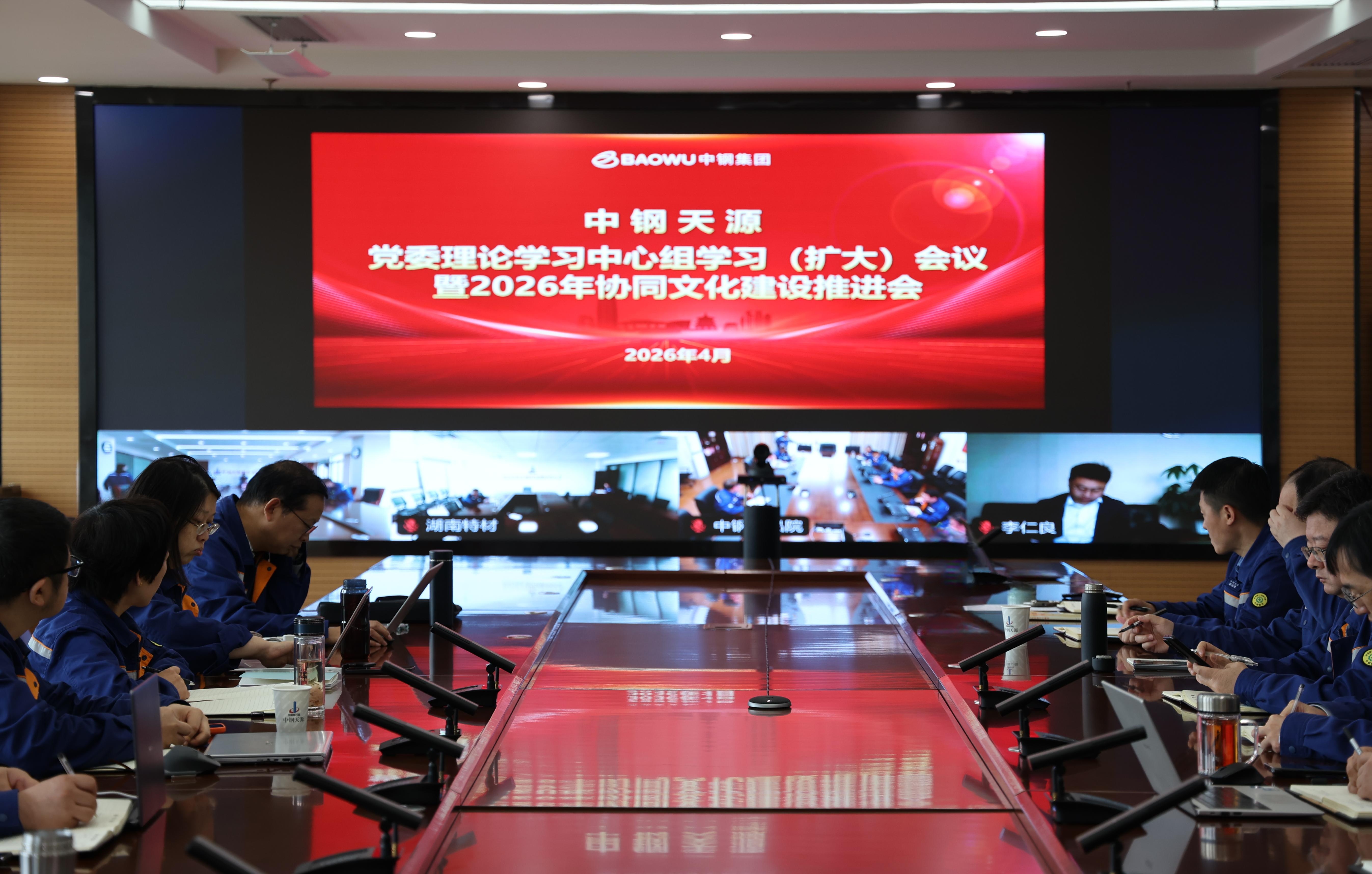 4月23日上午,中钢天源召开党委理论学习中心组学习(扩大)会议暨2026年协同文化建设推进会,深入学习习近平文化思想,贯彻落实中国宝武、中钢集团协同文化建设工作部署,推进中钢天源协同文化建设。中钢天源党委理论学习中心组成员参加会议,并结合实际工作,交流学习体会。
