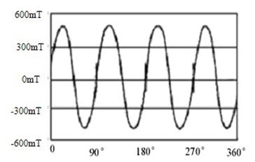 径向多极磁环,表面磁通密度高,明显优于传统瓦形磁钢拼装的性能,磁路设计与辐射环完全不同。辐射环表面磁场分布呈马鞍形,径向多极磁环表面磁场分布呈正弦波形,更有利于电机的设计。