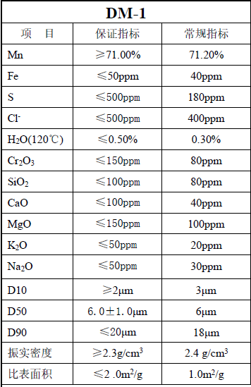 电池级四氧化三锰典型参数